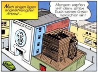 Es gibt eine Tresortür mit Kombination – die Bilder ähneln FC 367/2. Dagobert wohnt nicht im Gebäude, in dem das Geld aufbewahrt wird.