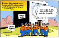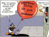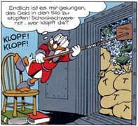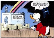 Dagobert pumpt das Geld ab, weil die Panzerknacker durch eine Schrägbohrung sein Geld anzapfen wollen.