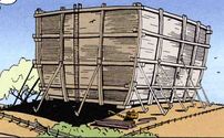 Ein oben offener Getreidesilo mit großem Nachteil: eine Windhose saugt sämtliches Geld aus dem Silo. Dagobert bekommt es wieder, weil er der Einzige ist, der Lebensmittel anbietet.