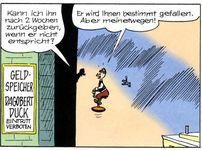 Die Erfahrung mit der Windhose veranlasst Dagobert, nach einer anderen Geldspeicherlösung zu suchen. Deshalb nur temporär.