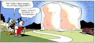 Die Panzerknacker graben einen unterirdischen Gang und Donald rät Dagobert, das Geld unter Wasser zu setzten. Durch außergewöhnlichen Frost friert das Wasser und sprengt den Speicher. Nach Erkenntnis von Wollina ersetzt durch G 17.